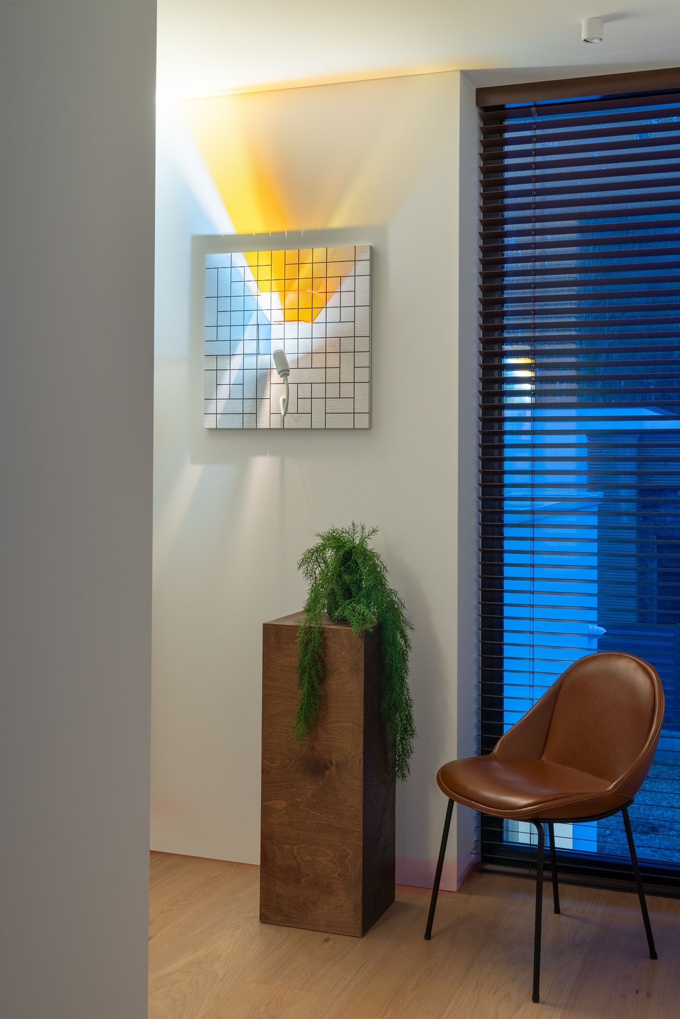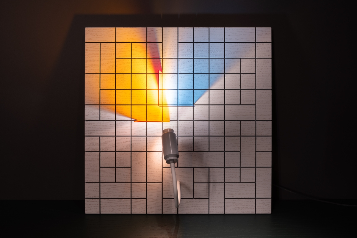 Sustainability ApproachThe base of the lamp composition is crafted from sustainable and easily recyclable materials, such as painted, milled MDF board with a wood veneer and interchangeable plexiglass parts in various colors and shapes. Although compositions can be created from many different plexiglass parts, some of them are so small in size that various plexiglass scraps can be used to make them. The light source is a flexible, narrow-angle 3000K LED lamp