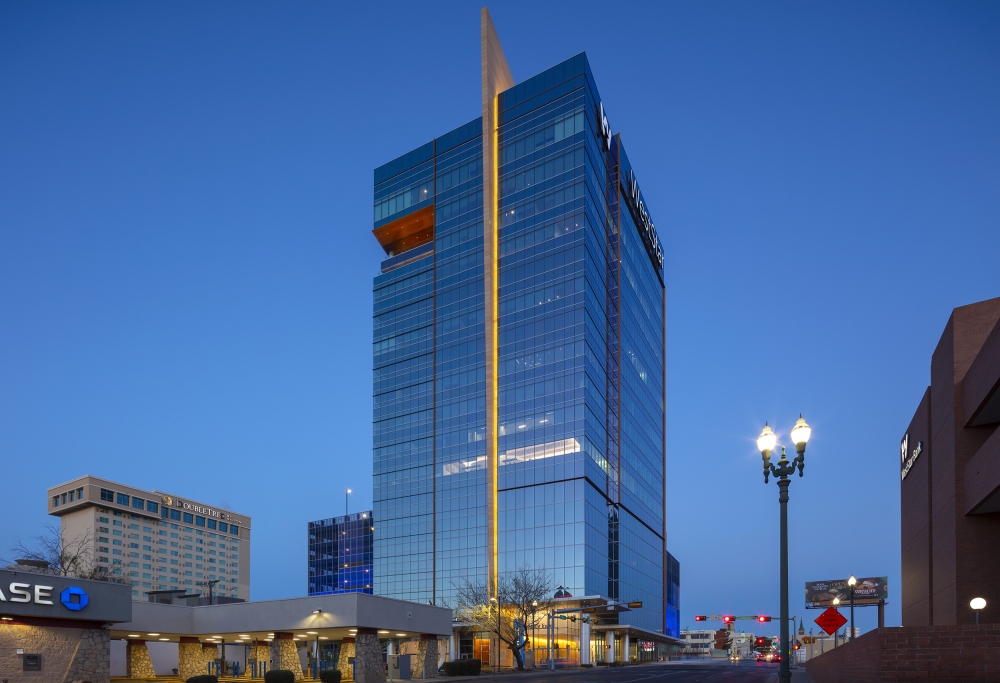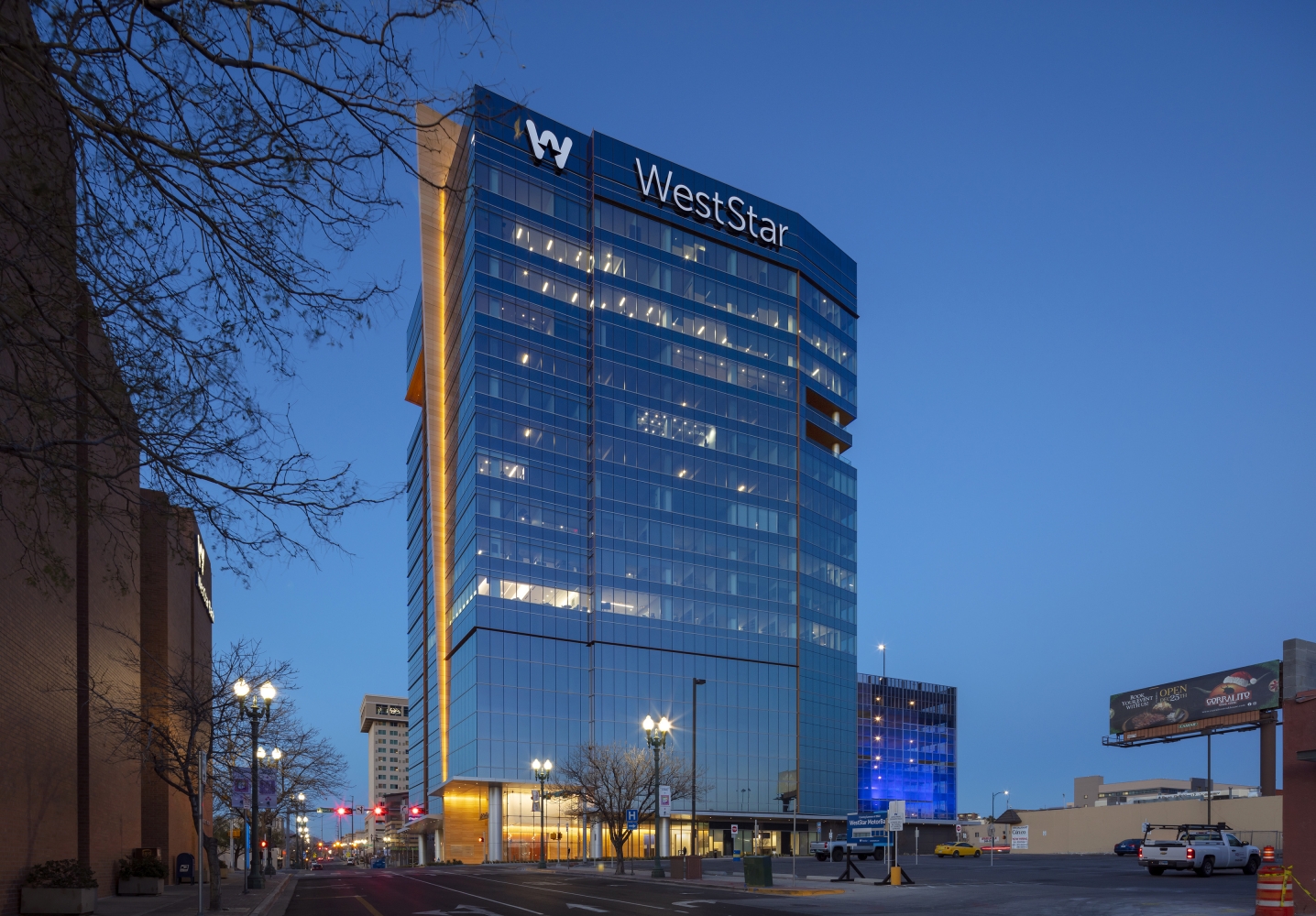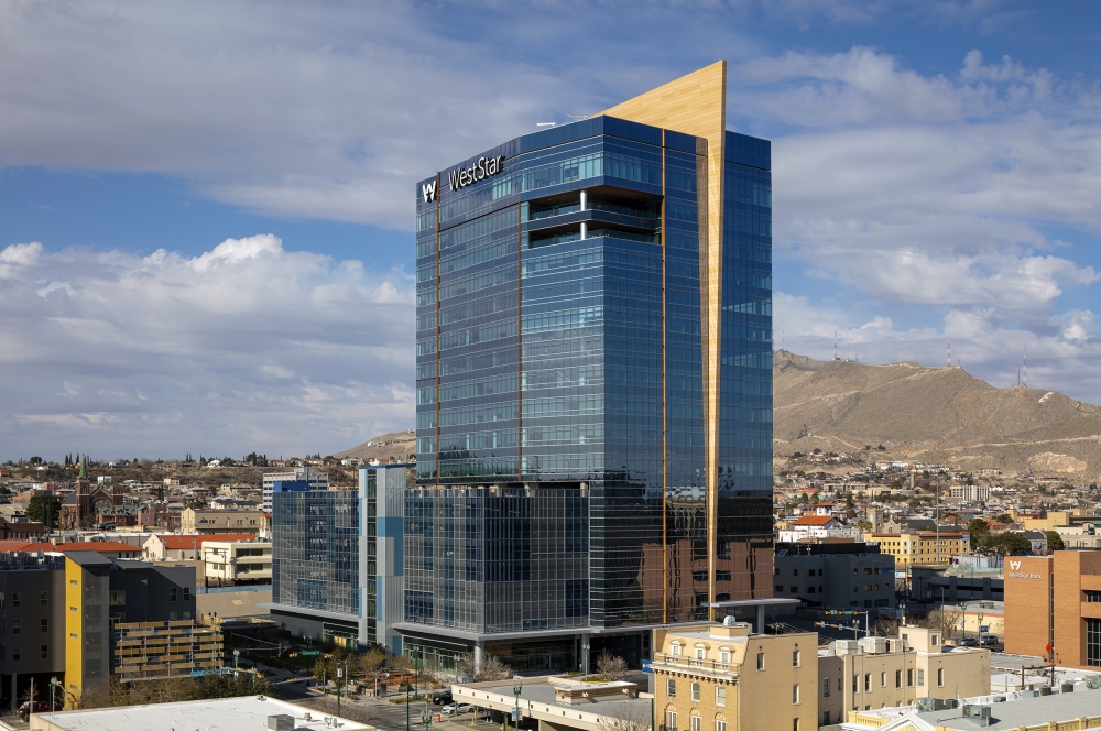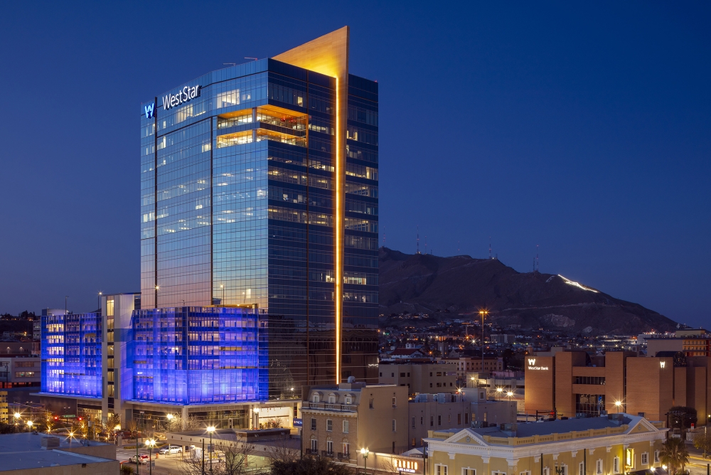 At the base of the tower, the parking garage surface features color-changing lighting with DMX controls, used for holidays and special events. The lighting of the tower brings a new exuberance to the city skyline, celebrating El Paso’s growth and revitalization.