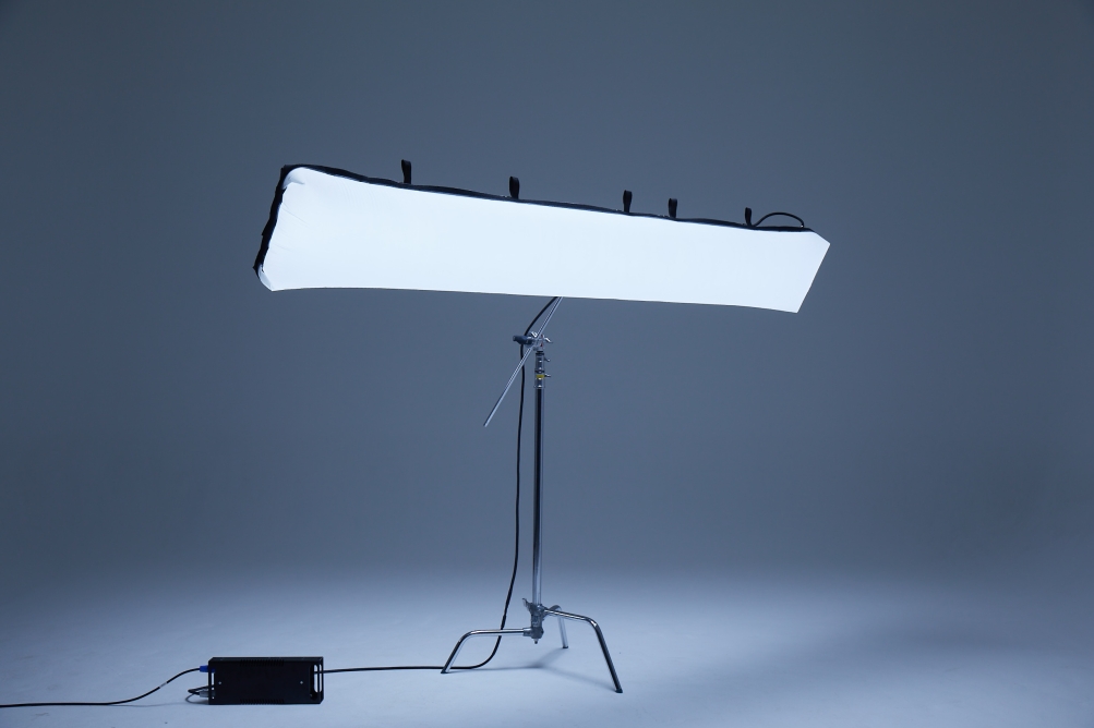 Entry DescriptionHaving worked on film shoots in the lighting department, we have seen a variety of lighting challenges on set that have been solved with a number of very different light sources, diffusers, and support devices. These solutions are interdependent and often cumbersome and require additional support systems, bulky transportation, a lot of crew members and plenty of installation time. That's why we came up with a device that solves a number of basic problems in lighting on film sets. The shape and rigidity of our products are provided with air inside the shell. As a result, the soft shell becomes the supporting structure for the light source - LED stripes inside of the device. The white part of the shell is an effective diffuser - essentially an integrated soft box - for the built-in light source. And the distribution of light sources inside of the shell and the volume of air ensure uniform and sufficient heat dissipation, thus eliminating the need for heavy radiators and/or fans.
